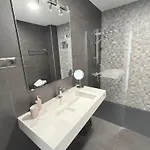 Bathroom facilities also include a walk-in shower and a separate toilet. There are hairdryers and bath sheets for guests' comfort.