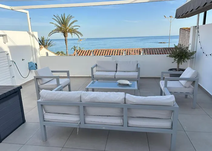Guests can enjoy a seaside sea view from a terrace at the beachfront Casa Cala Del Mar Villa La Cala Del Moral, 5 minutes' walk from Playa de La Butibamba Beach.